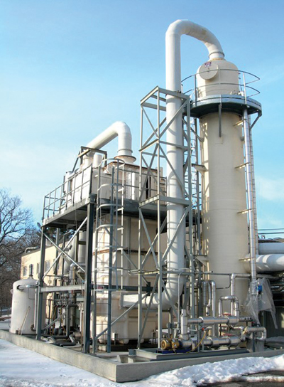 Engineered for use with water, reactive chemical reagents, or special solvent scrubbing liquids to reduce costs and recover or minimize liquid waste, the scrubbers provide up to 99.9% removal efficiency and are available in a full range of sizes for gas flow rates from 30 cfm thru 300,000 cfm.