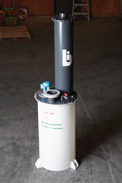 The scrubber system uses a triple action scrubbing technology, is available in four model sizes to handle gas capacities from 0 to 1,500 acfm, and two unique (Type 1 and Type 2) operating configurations. Type 1 is economically priced and configured to use water on a once through basis. Type 2 incorporates a special circulation pump and uses water at a reduced consumption rate, or a chemical reagent such as sodium hydroxide on a re-circulated batch basis. The system features super tough corrosion resistant construction for long lasting in-field operation and offers a low pressure scrubber design to avoid dangerous over-pressurization of fiberglass and plastic storage tanks.